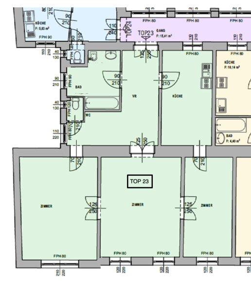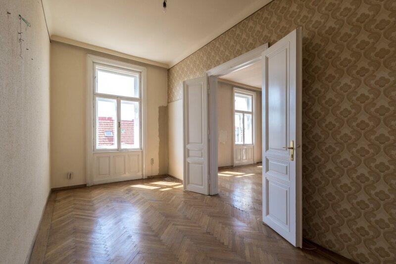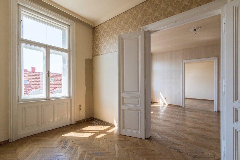 Die sanierungsbedürftige Einheit bietet 3 Zimmer, einen extra Küchenbereich mit Gangfenster, ein Bad mit Fenster sowie eine separate Toilette.